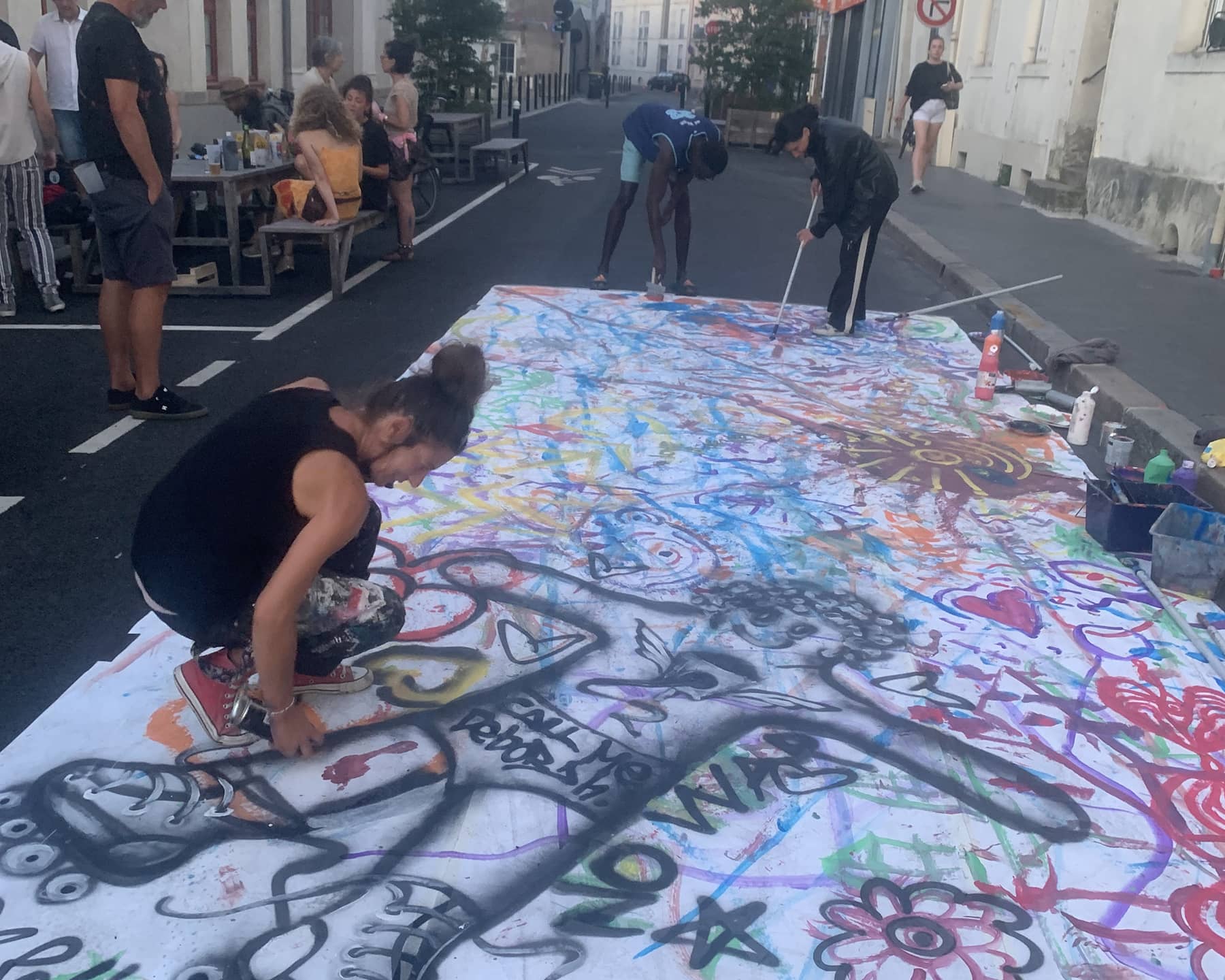 Au cœur du centre-ville de Nantes, dans l'allée de la Maison Rouge, une quinzaine d'artistes se sont réunis en juillet 2025 pour créer ensemble. Les habitants du quartier étaient invités à participer à cette démarche collective. Intégralement piétonne dans le cadre du projet de piétonnisation de la ville, l'allée a été l'endroit idéal pour accueillir cette action artistique.