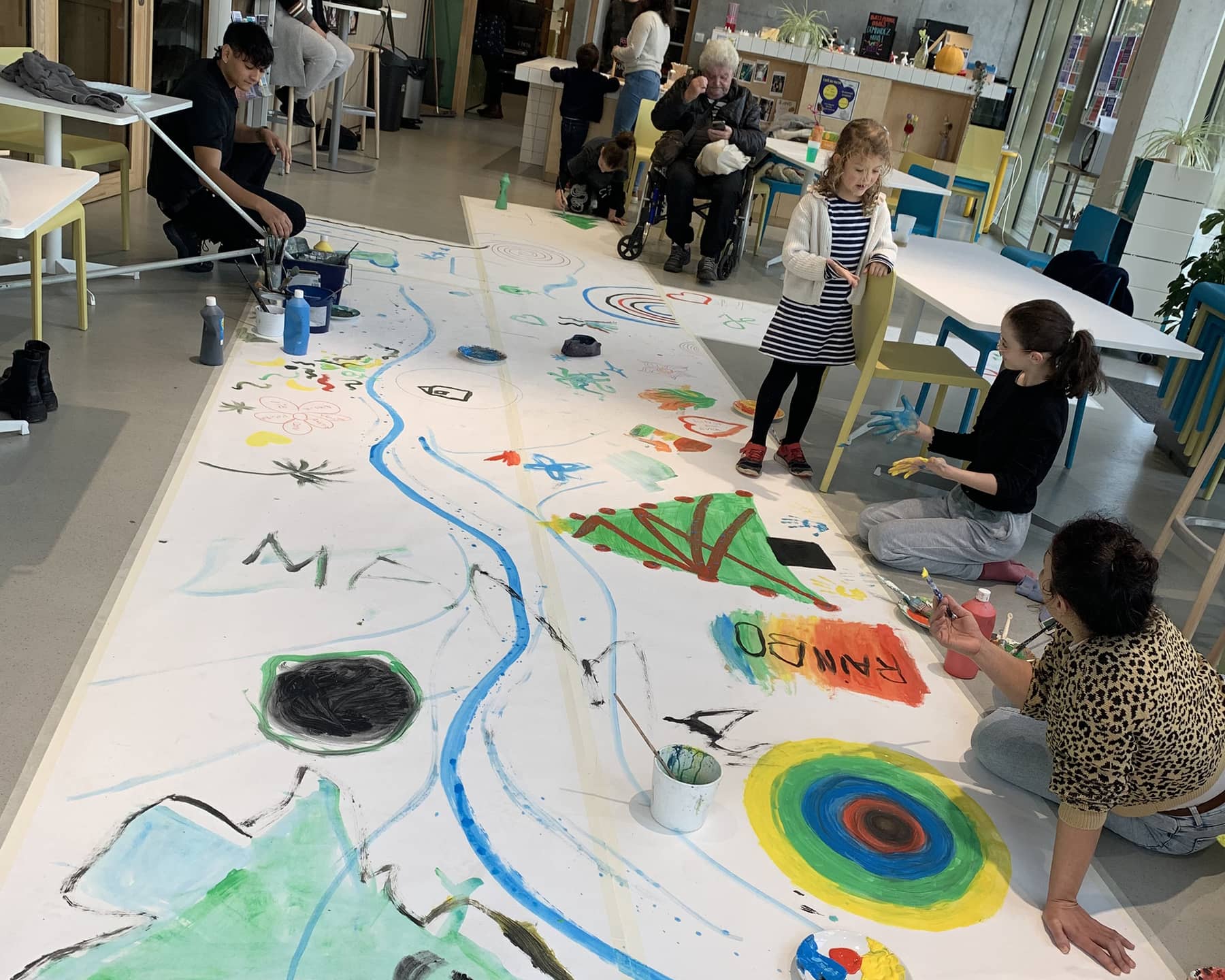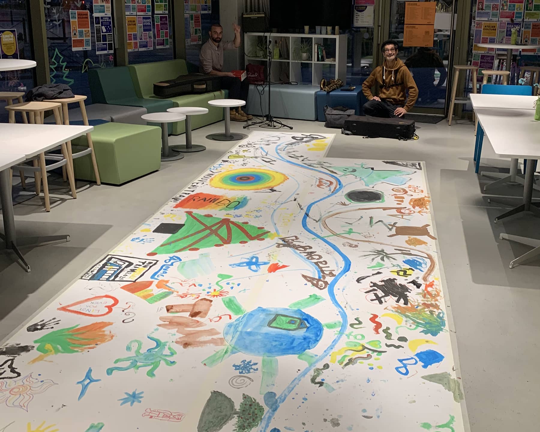 À travers des pratiques variées, peinture, sculpture, collage, danse, musique, les participant·e·s sont invité·e·s à explorer, expérimenter et s'exprimer librement. Ces ateliers sont pensés comme des espaces de création collective, où chacun peut contribuer selon ses envies, ses capacités et sa sensibilité.