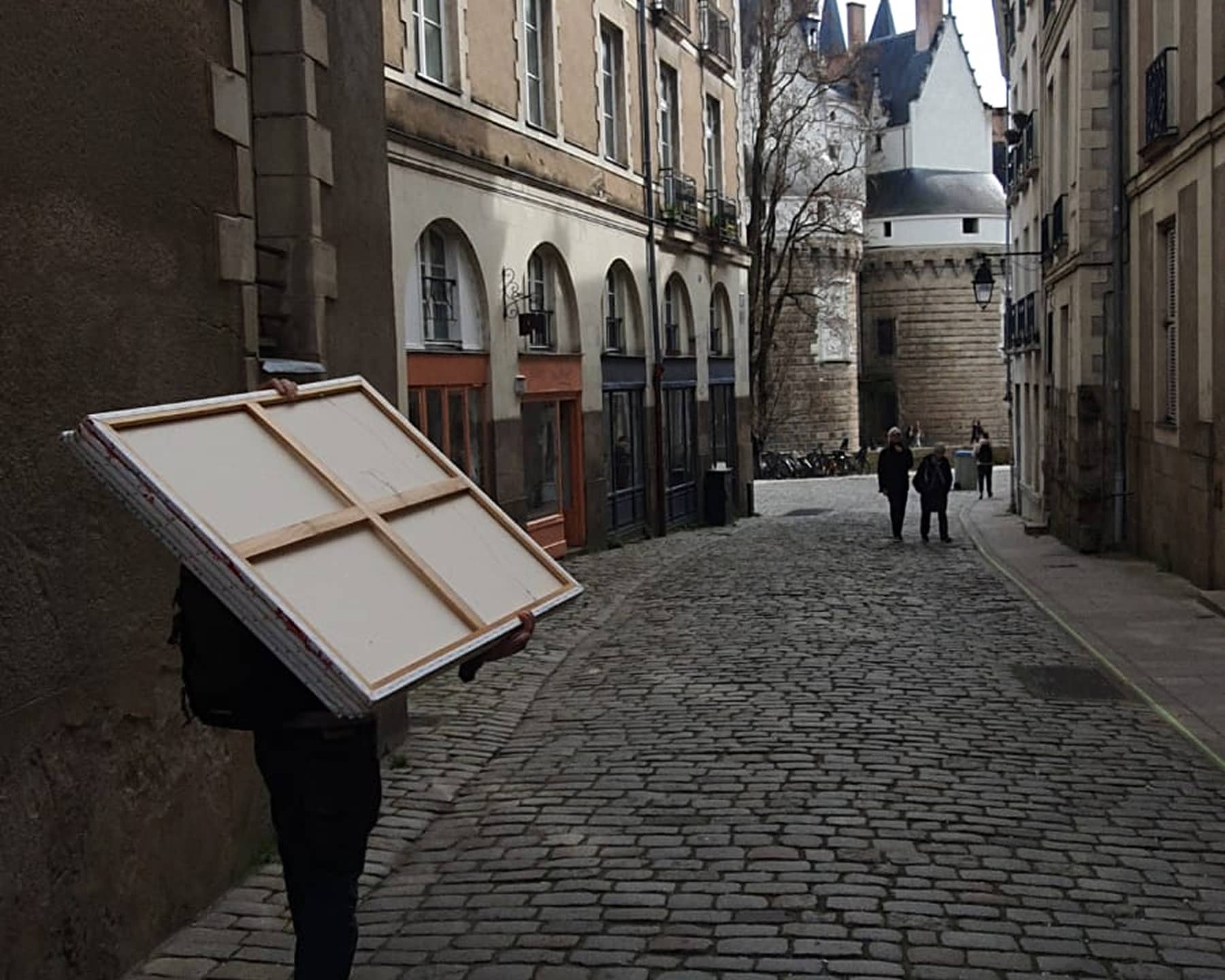 (NANTES 2024) ACCOMPAGNÉ PAR DES AMIS, JE ME SUIS PROMENÉ DANS LE CENTRE-VILLE DE NANTES AVEC MES PEINTURES.