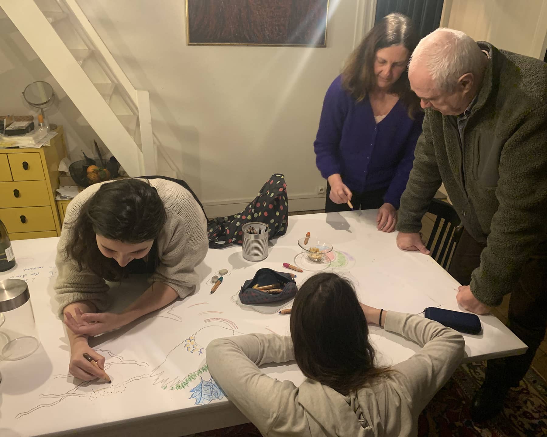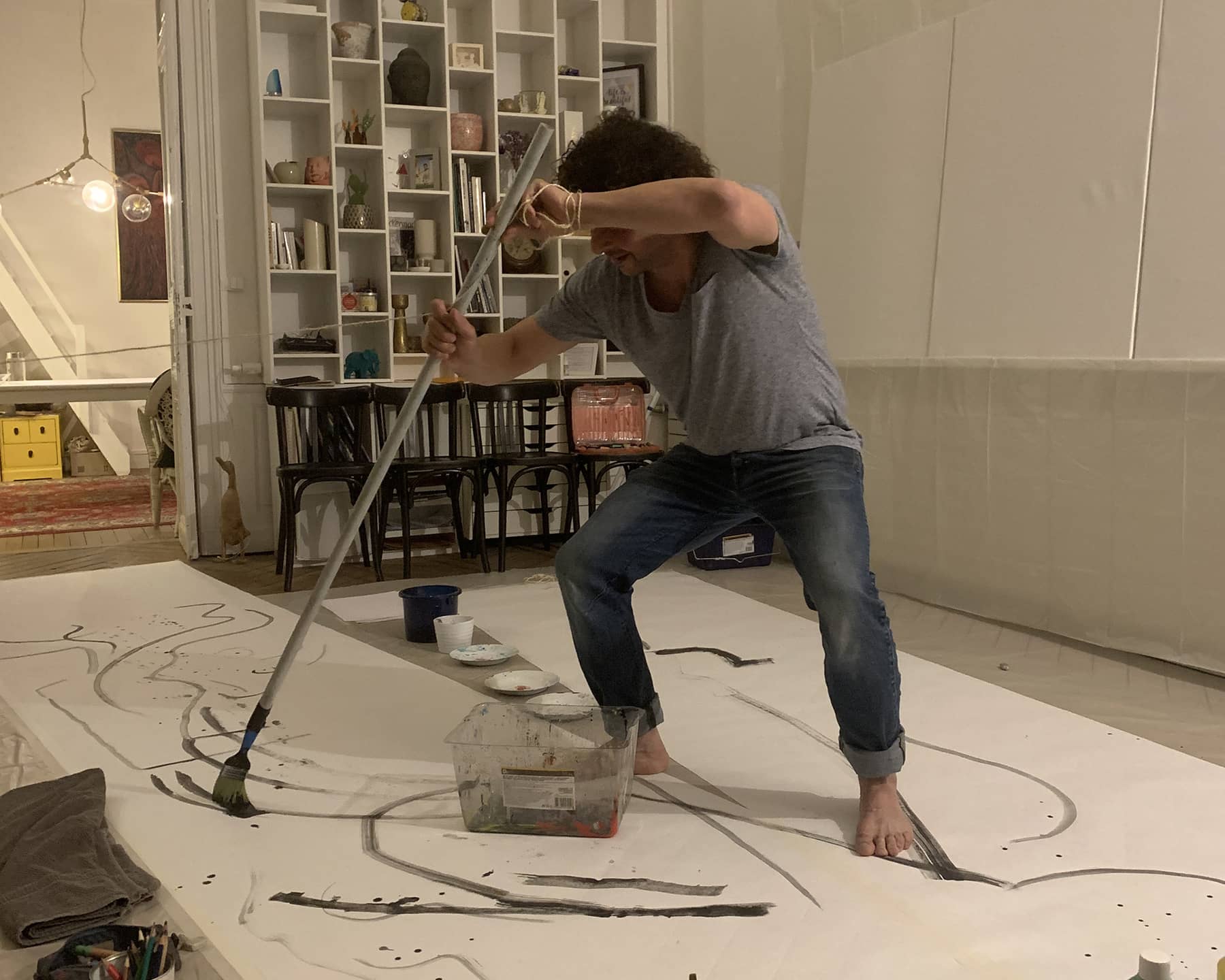 Dans ce cadre, il a récemment mis son salon à disposition pour accueillir une performance mêlant peinture et musique. Une dizaine de personnes ont été invitées à y assister et à y participer.